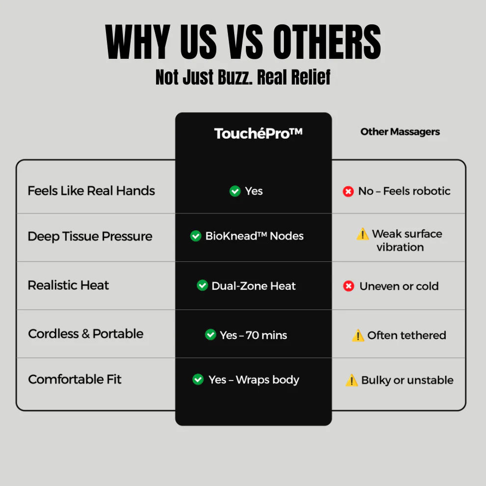 Try TouchéPro™ risk-free. Use it every night. If it doesn't relieve your tension — if it doesn't feel like real hands — return it for a full refund.